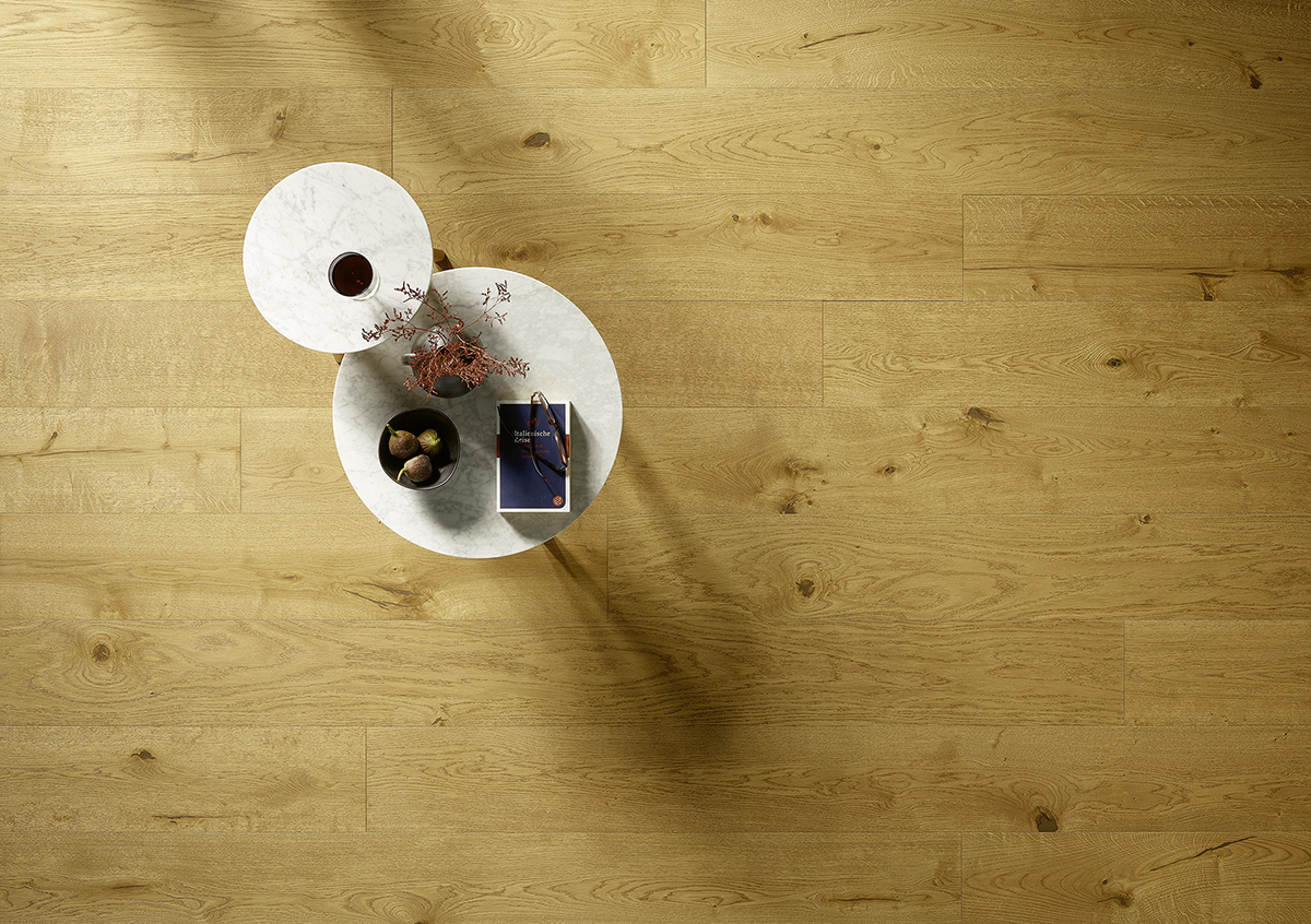 starke Nutzschicht und eine pflegefreie UV-Oberflächenbehandlung aus. Die seidig matte Optik unterstreicht den Wert dieses Bodens.