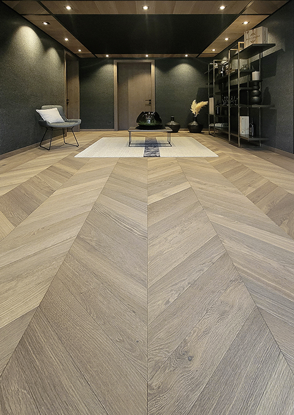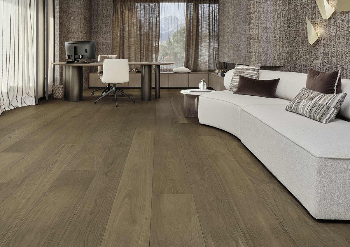 Erdverbunden – elegant, mit griffigem Charakter und starker Bürstung, zeigt sich der Chaletboden. Er lässt die europäische Eiche auf die ruhige Art zur