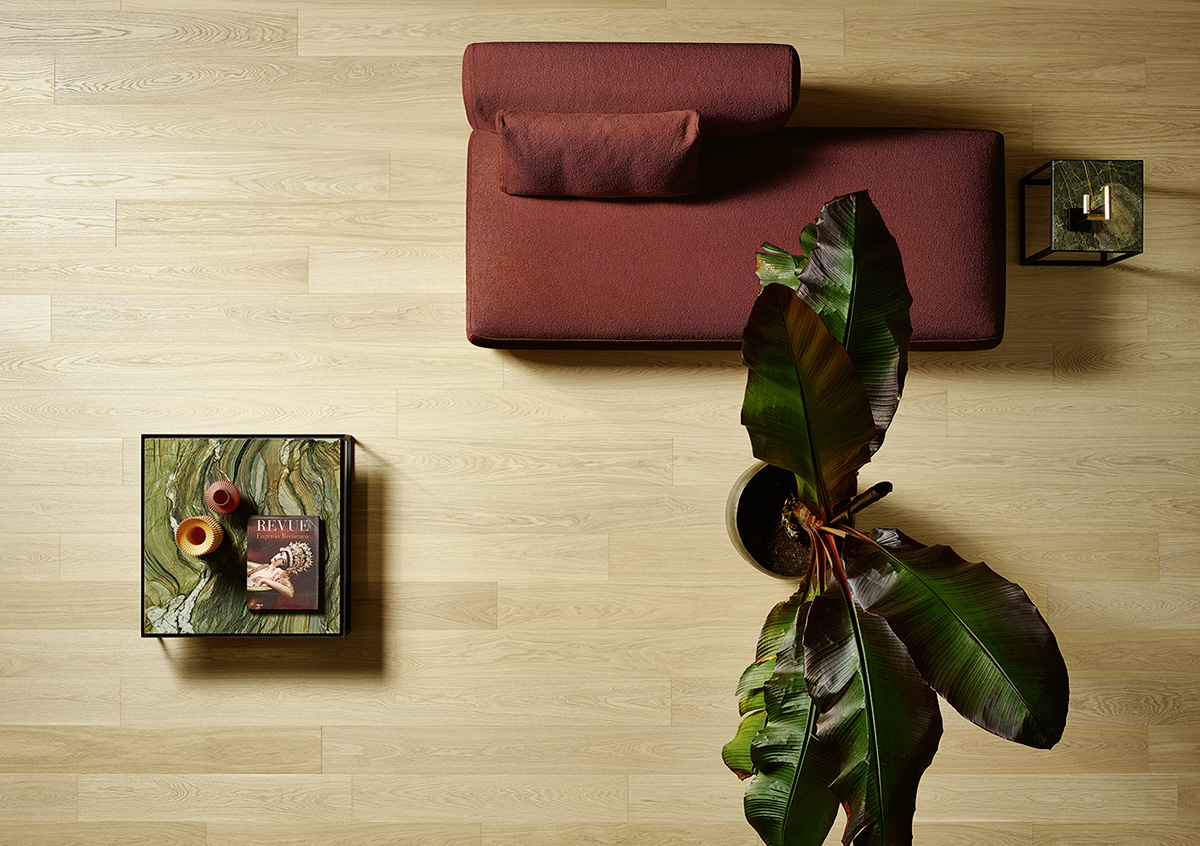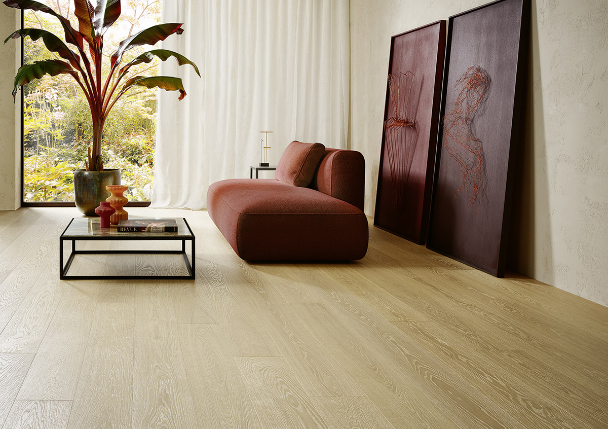 starke Nutzschicht und eine pflegefreie UV-Oberflächenbehandlung aus. Die seidig matte Optik unterstreicht den Wert dieses Bodens.