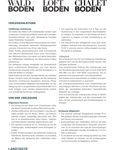 WALDBODEN, LOFTBODEN, CHALETBODEN Verlegeanleitung